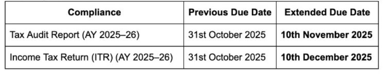 Originally, the due date for submission of the Tax Audit Report was 30th September 2025, which was later extended to 31st October 2025. With this recent announcement, the deadline now stands at 10th November 2025.